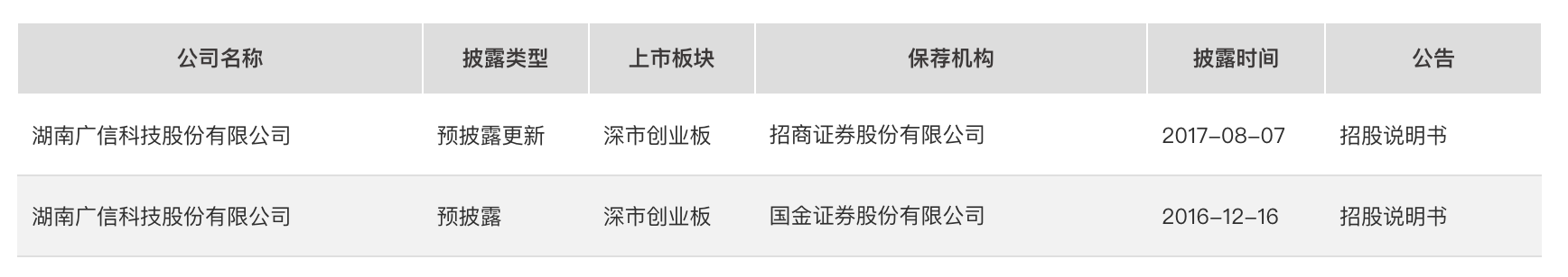 2年多时间,广信科技有了新的想法,在2016年12月16日于证监会网站上进行过预披露,当时保荐机构是国金证券,上市板块创业板。