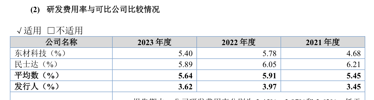 2023年,广信科技的营业收入为4.2亿元,毛利率26.14%,净利润4940.44万元,经营活动产生的现金流量净额为2876.55万元,此前2022年和2021年这个数据为负值。广信科技的研发投入占营业收入比例较为稳定,2023年为3.62%。需要指出的是,广信科技这研发费用率低于同行业公司平均值。