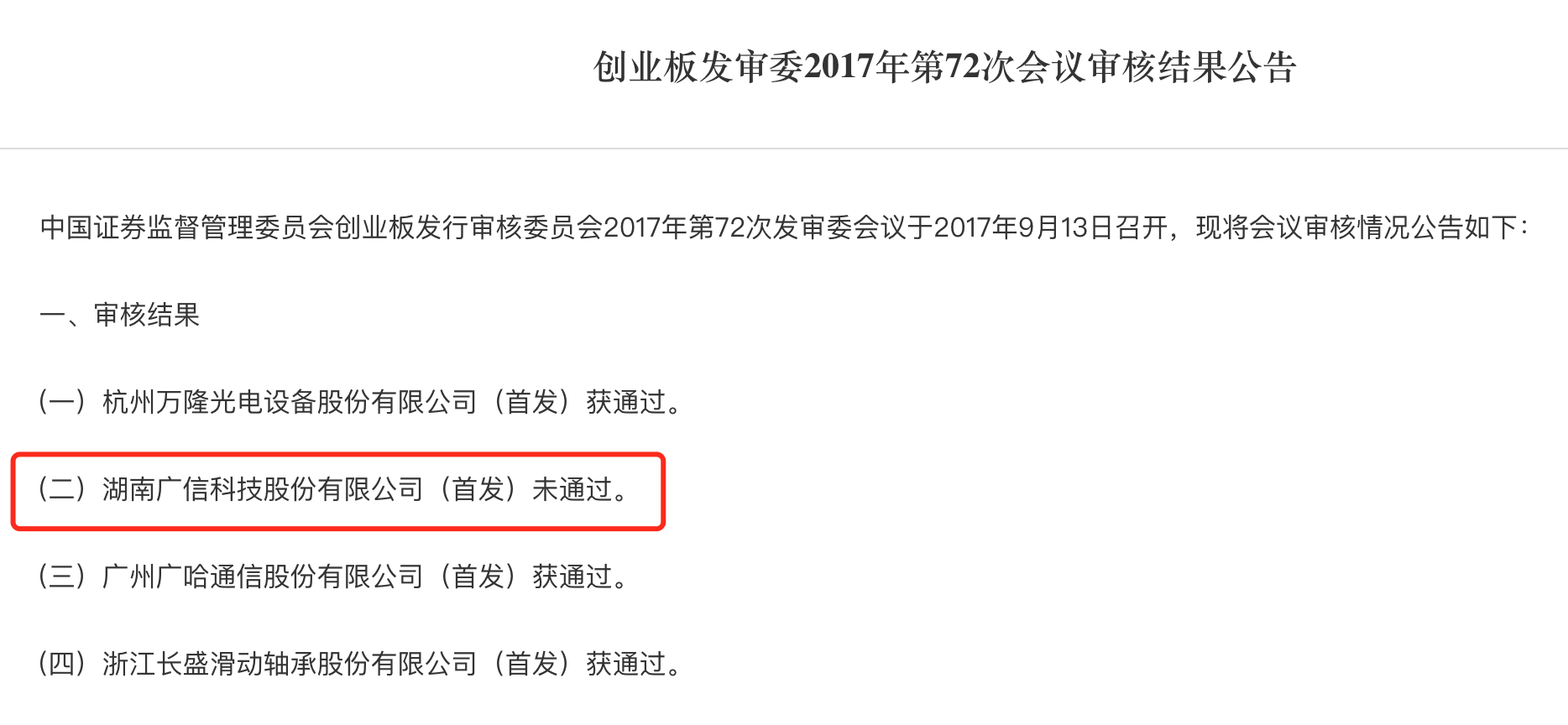 来源:证监会网站2017年9月13日,广信科技终于熬到上会,不过遗憾的是,并未获得证监会创业板发审委的认可,首发被否。