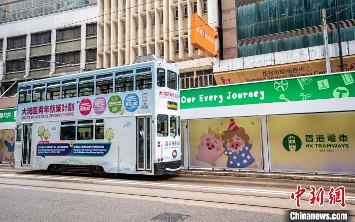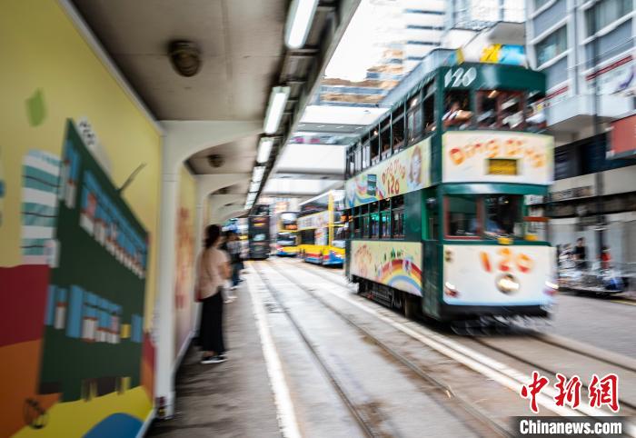 图为一辆120周年特别涂装的电车行驶在香港中环街头。中新网记者 侯宇 摄