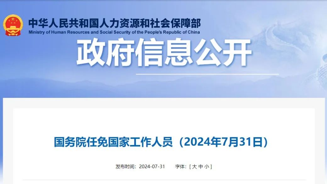 人社部网站7月31日消息,国务院任免国家工作人员。