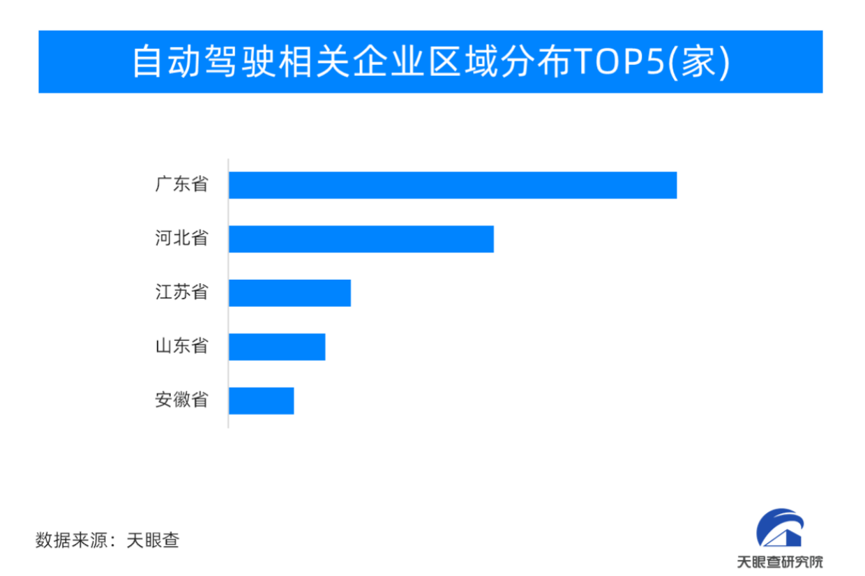 天眼查专业版数据显示,截至目前,现存与自动驾驶相关的企业5595余家,其中,2024年1-6月,新增注册相关企业259余家。从地域分布来看,广东、河北以及江苏,三地所拥有的自动驾驶相关企业位居前列,分别有1360余家、791余家以及383余家;占全国总数的占比分别为24.1%、14.02%、6.79%。