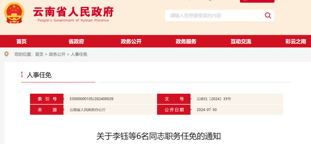 李 钰 任省工业投资控股集团有限责任公司副总裁,免去其省健康产业发展集团有限公司董事长职务;