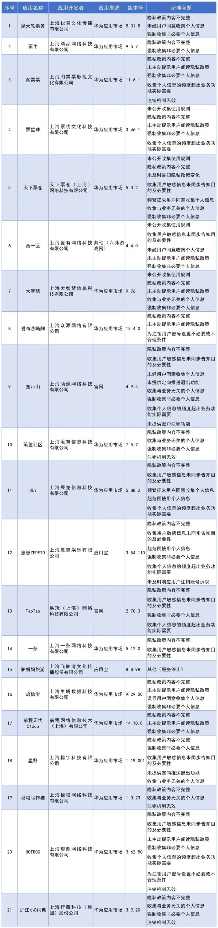 “网信上海”微信公众号7月30日消息,为规范App个人信息处理活动,保护公民个人信息合法权益,根据《个人信息保护法》《App违法违规收集使用个人信息行为认定方法》《常见类型移动互联网应用程序必要个人信息范围规定》等法律法规,2024年4月至7月,上海市网信办对属地21款App开展了收集使用个人信息专项检查,共发现80余项问题。经过通报和跟进指导,截至目前,各App运营单位均已完成问题整改。