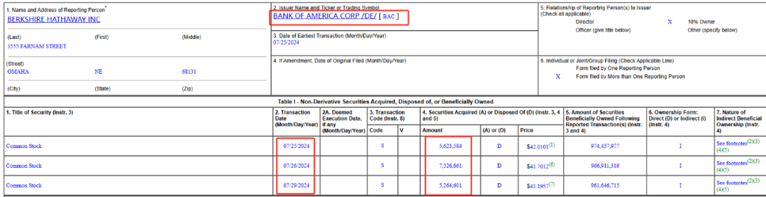 此前,伯克希尔·哈撒韦公司分别在7月19日和7月24日披露了其实施减持美国银行的动作。