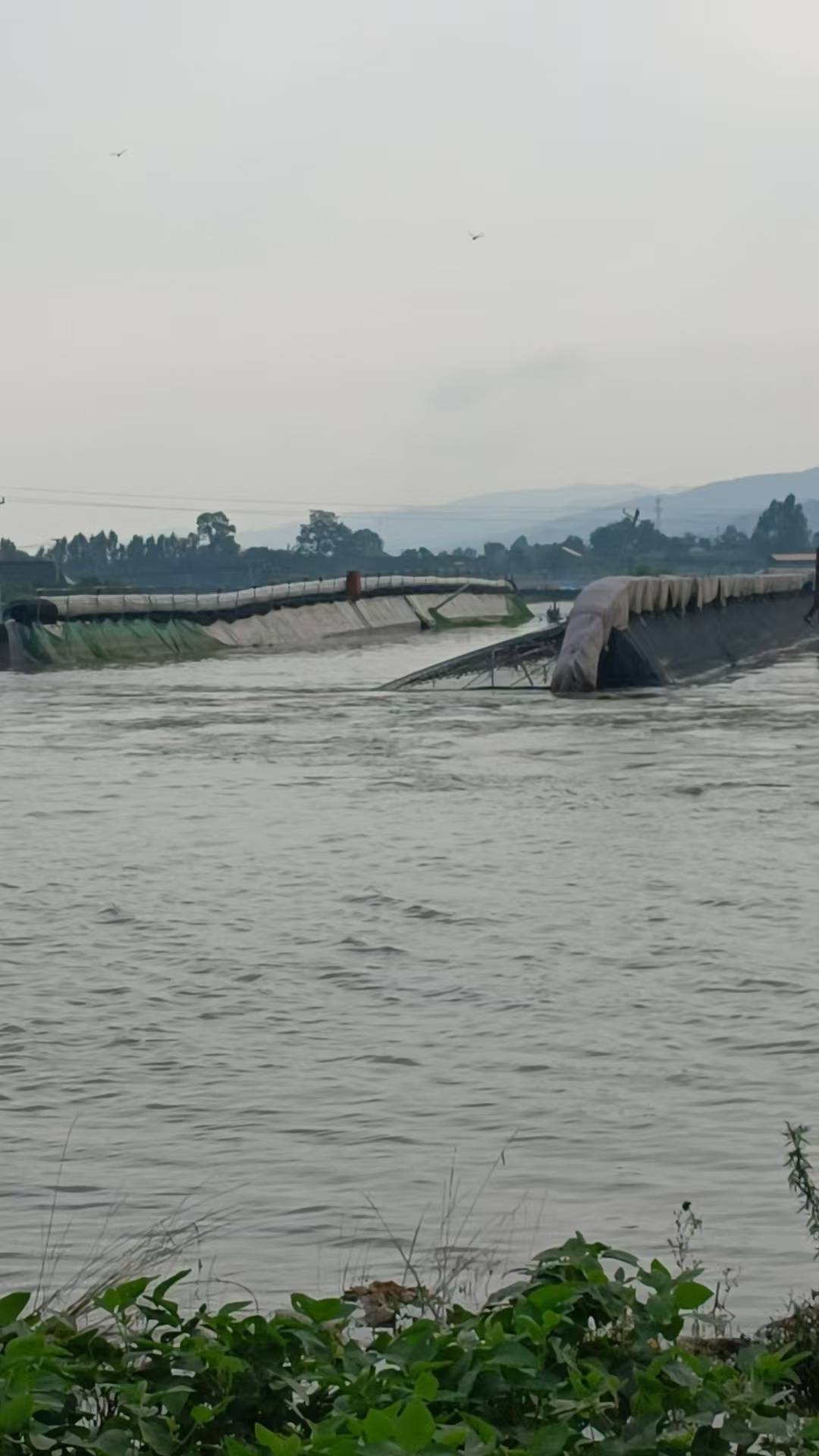 被洪水冲倒的蓝莓大棚。图源/受访者提供