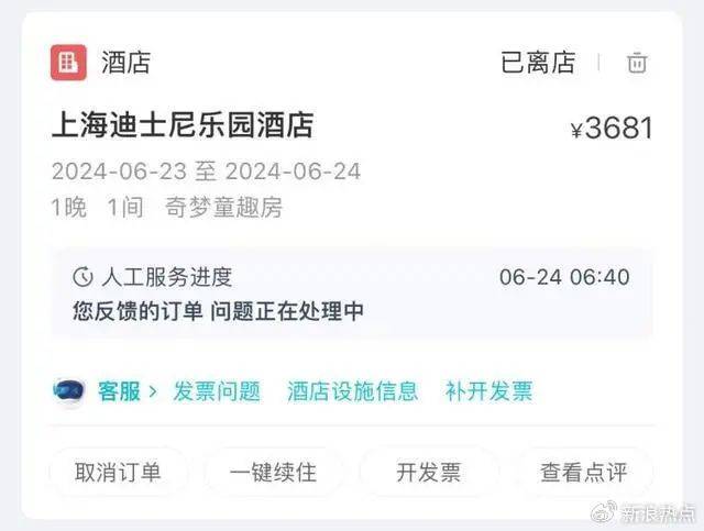 北京的张女士来上海旅游,6月21日临时决定在6月23日去迪士尼玩,并在“去哪儿”平台预定了上海迪士尼乐园酒店价值3681元的房间。