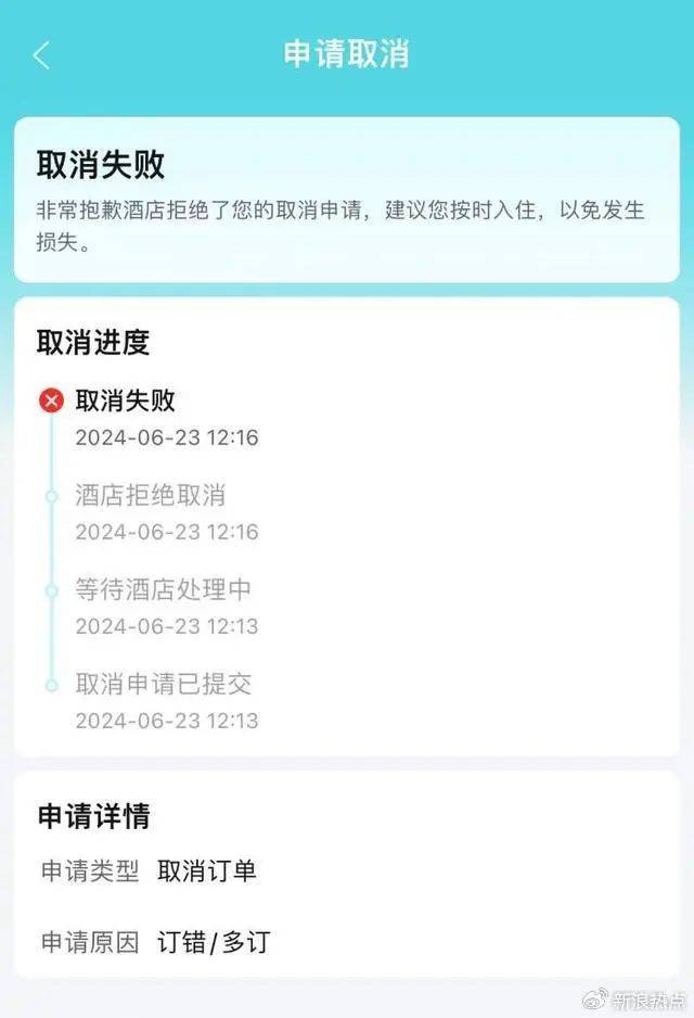 直到6月23日入住迪士尼酒店当天,张女士才向“去哪儿”平台提交了退订申请,可平台却表示,酒店拒绝了她的取消申请,建议张女士按时入住,以免发生损失。
