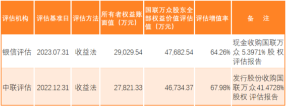 图:国联万众前后两次评估对比 资料来源:公司公告 制图:郭新志