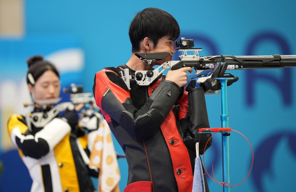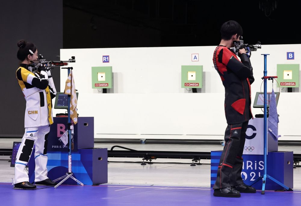 7月27日,在巴黎奥运会射击10米气步枪混合团体决赛中,“00”后中国组合黄雨婷/盛李豪摘得金牌。这是巴黎奥运会诞生的首枚金牌。
