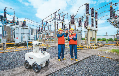 近日,随着夏季高温天气的持续,浙江省嘉善县全社会用电量持续攀升。在迎峰度夏电力保供一线,国网嘉善县供电公司运维人员利用智能机器人和红外线测温仪,通过“智能巡检+人工巡视”方式,对嘉善110千伏牛桥变电所开展设备安全巡视,全力做好电力保供工作。徐柳薇摄