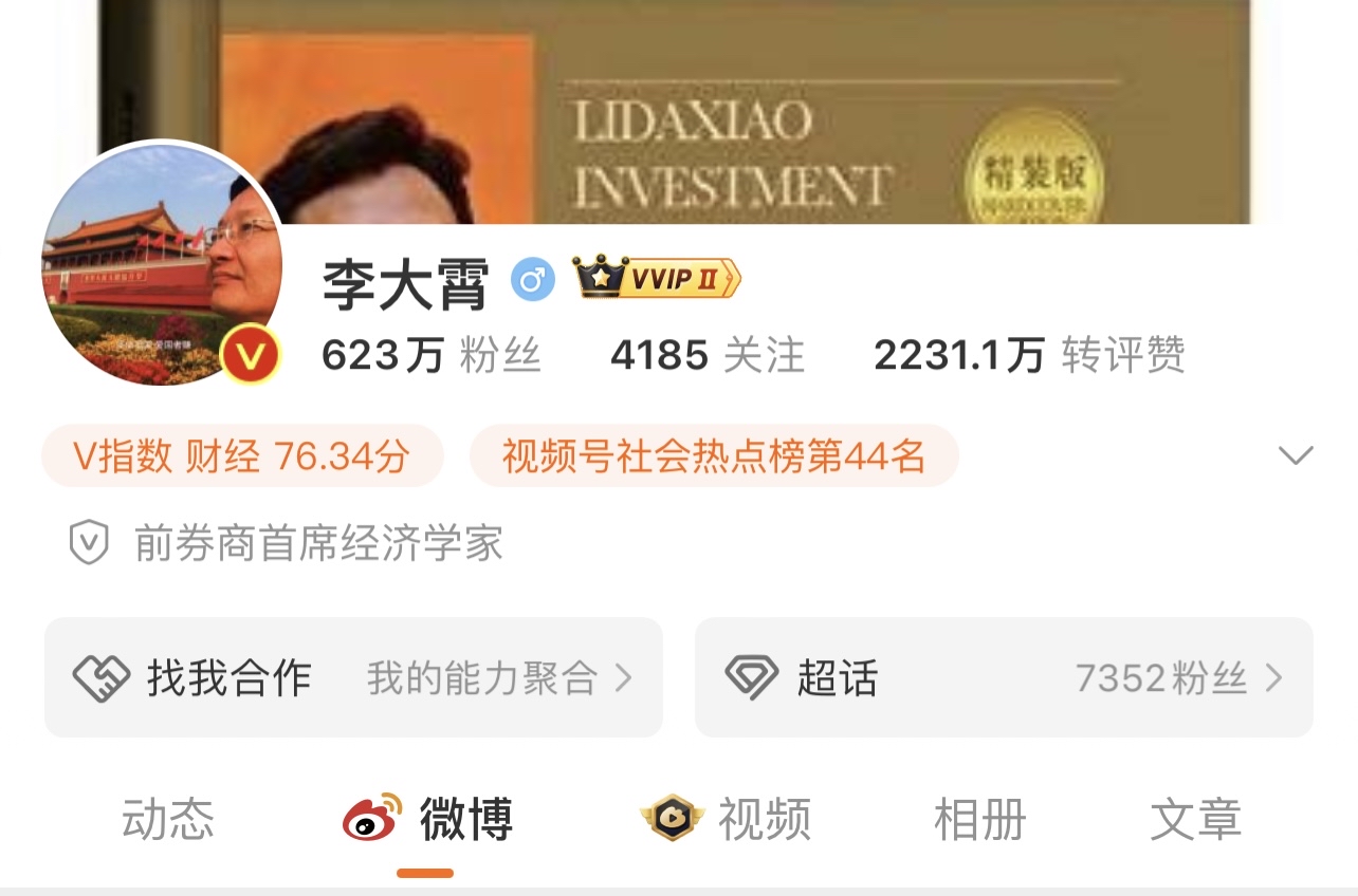 李大霄在微博上拥有多达623万粉丝的关注,多年来,他一直强调“看好中国最低估最核心的优质资产”,并长期提示绩差股票风险。6月下旬以来,市场持续震荡调整,李大霄又先后在微博发声要“保护散户”“让散户得以回报”。