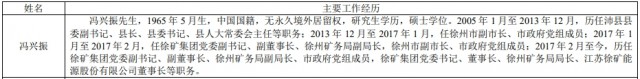 据苏能股份披露的简历,冯兴振生于1965年5月,2005年1月至2013年12月,历任沛县县委副书记、县长、县委书记、县人大常委会主任等职务;2013年12月至2017年1月,任徐州市副市长、市政府党组成员;2017年1月至2017年2月,任徐矿集团党委副书记、副董事长、徐州矿务局副局长,徐州市副市长、市政府党组成员。