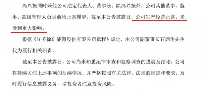 苏能股份表示,除冯兴振外,公司其他董事、监事、高级管理人员目前均正常履职,公司副董事长石炳华将代为履行相关职责。