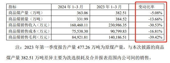 业绩层面,受累于煤炭价格震荡下行,苏能股份业绩出现明显下滑。2023年年报显示,公司全年实现营收约120.29亿元,同比下降20.55%;归母净利润同比下降11.82%,经营性现金流量净额同比下降24.36%。今年一季度,公司实现归母净利润约4.45亿元,同比大幅下降48.22%;加权平均净资产收益率仅为2.76%,同比减少4.8个百分点;主要经营数据亦全面下滑。