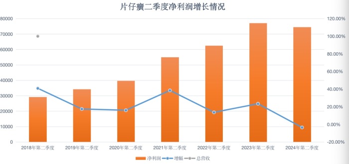 计算可知,片仔癀交出了近7年来最差的半年度增速。