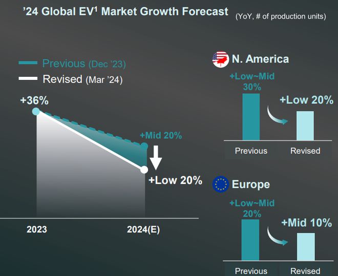 此外,LG能源还预计其2024年销售额将同比下降20%以上,并将减缓产能扩张。