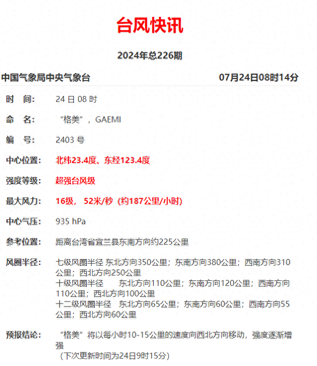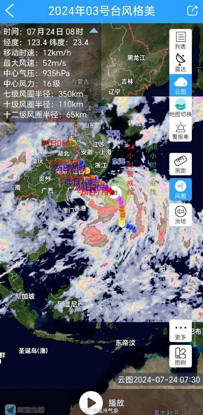 最新消息:台风“格美”已经升级为今年首个超强台风,中心最大风力已达16级 52米/秒(约187公里/小时),继续逼近福建。