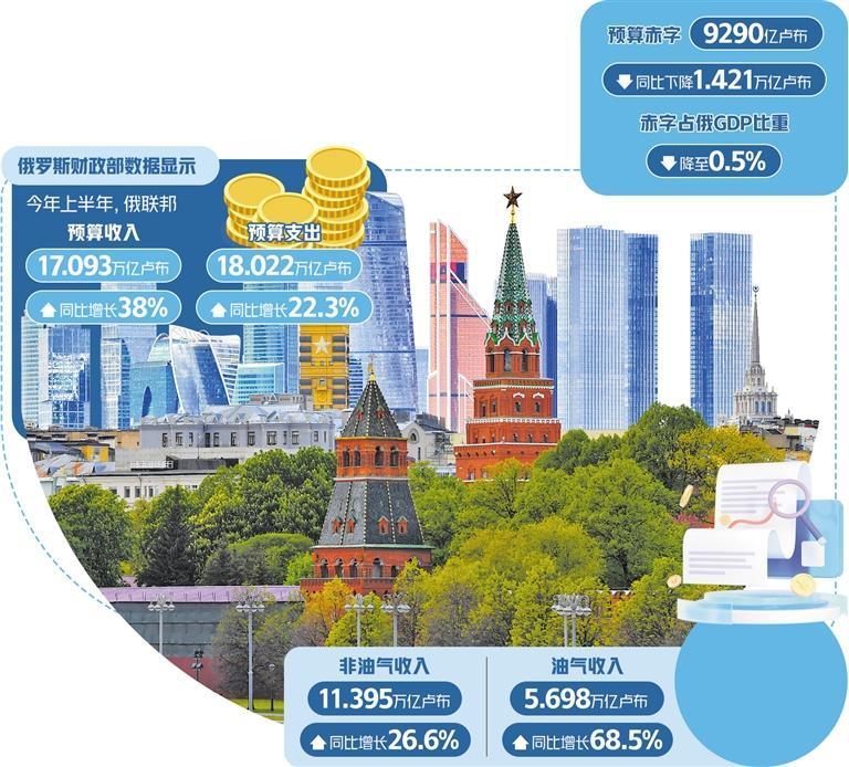近日,俄财政部发布今年上半年联邦预算执行情况初步评估。据初步测算,今年上半年,俄联邦预算收入达17.093万亿卢布,同比增长38%;俄联邦预算支出为18.022万亿卢布,同比增长22.3%;俄联邦预算赤字为9290亿卢布,同比下降1.421万亿卢布,赤字占俄国内生产总值(GDP)比重由去年同期的1.4%降至0.5%。俄财政部称,俄罗斯财政部执行总统国情咨文中相关指示,联邦预算收入和支出的参数化确保了预算结构平衡,有助于加强俄罗斯联邦宏观经济和金融稳定。
