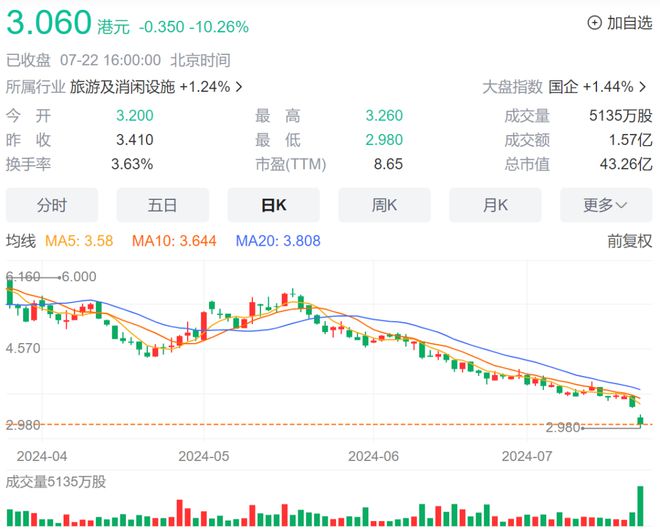 7月22日,九毛九股票低开,盘中一度跌破3港元关口,跌幅超12.6%。截至收盘,九毛九报3.06港元,下跌10.26%,总市值43.26亿港元,公司股价已连续创上市以来新低。
