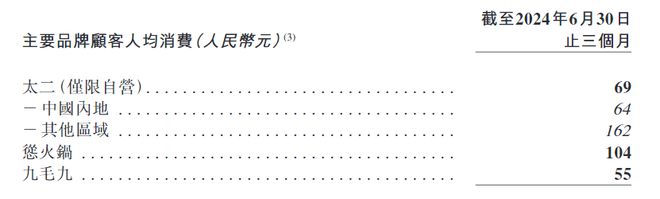 第二季度,九毛九主动调整了太二(中国内地餐厅)及怂火锅的菜单结构及菜品价格,并增加推广活动。直白说就是降价,再叠加消费习惯改变,第二季度太二(自营)、怂火锅、九毛九餐厅的顾客人均消费均在下降,分别为69元、104元、55元,与去年全年的75元、113元、58元相比,分别减少6元、9元、3元。