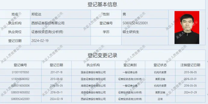郑宏达加入西部证券时间并不长,距今不过4个月。他原本就职于海通证券,在海通证券研究所担任科技产业链负责人,管理整个科技研究团队。
