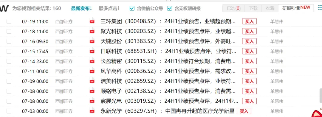单慧伟作为西部证券电子行业首席分析师,7月的研究重点在于所覆盖公司的半年报业绩预告。