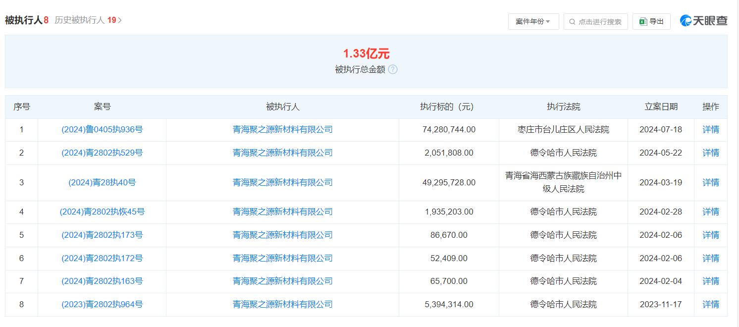 包括未付丰元股份的7000余万元订金在内,青海聚之源合计被执行总金额高达1.33亿元。来源:天眼查APP