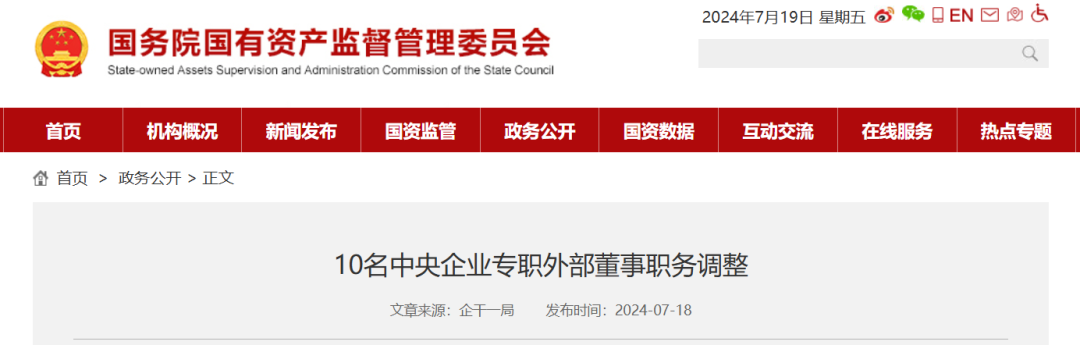 经研究,邓建玲、刘智全、冯德华、周明春、王义栋、董宝良、侯晓任中央企业专职外部董事;免去张雅林、罗建川、杨彬的中央企业专职外部董事职务,退休;张雅林不再担任中国华电集团有限公司、中国节能环保集团有限公司、中国信息通信科技集团有限公司外部董事职务;罗建川不再担任中国远洋海运集团有限公司外部董事职务;杨彬不再担任中国盐业集团有限公司、矿冶科技集团有限公司外部董事职务。