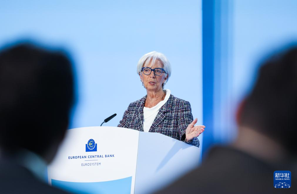 7月18日,欧洲中央银行行长拉加德在德国法兰克福欧洲中央银行总部举行的新闻发布会上讲话。新华社记者 张帆 摄