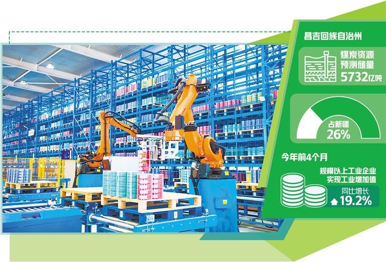 如何将资源优势加速转化为产业优势?昌吉州坚持绿色高效利用资源,以链式集群发展思路,打造绿色矿业、煤炭煤电煤化工、新能源新材料等战略性新兴产业3个千亿元级产业集群,以及油气生产加工、棉花和纺织服装、绿色有机果蔬、粮油、优质畜产品5个百亿元级产业集群。
