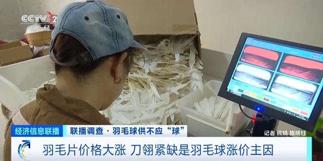 广东深圳某羽毛球品牌副总经理 张煜:今年我们单一产品销售总量同比上涨了40%,从去年每个月5万打左右到今年已经10万打一个月。打羽毛球的人越来越多了,但是鹅毛片、鸭毛片,确实是一个周期性产品,它是纯天然的,就可能出现了供需关系不平等。