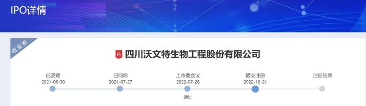 据深交所网站最新披露的最新IPO进程,日前,四川沃文特生物工程股份有限公司(以下简称“沃文特”)等多家公司更新招股书。其中,沃文特招股书于2021年6月获得受理,当年7月获问询,随后于2022年7月上会通过上市委会议,当年10月公司IPO提交注册申请,但至今(约1年7个月)未有进展,公司IPO仍停留在注册申请的大门口。