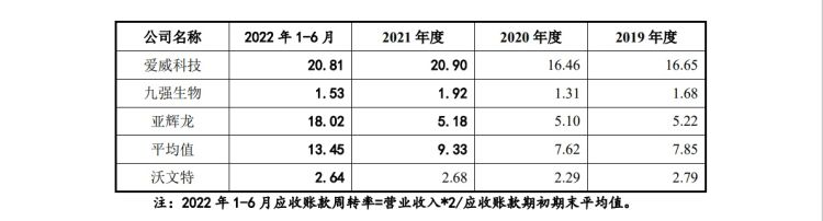 回复称,报告期各期末,沃文特应收账款周转率(次/年)与同行业可比公司对比如下: