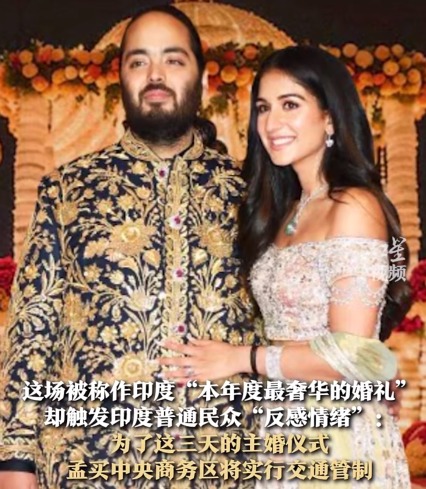 据证券时报,7月12日,全球各界名流齐聚印度孟买,参加亚洲首富穆克什·安巴尼小儿子阿南特·安巴尼与其未婚妻拉迪卡·麦钱特的豪华婚礼。
