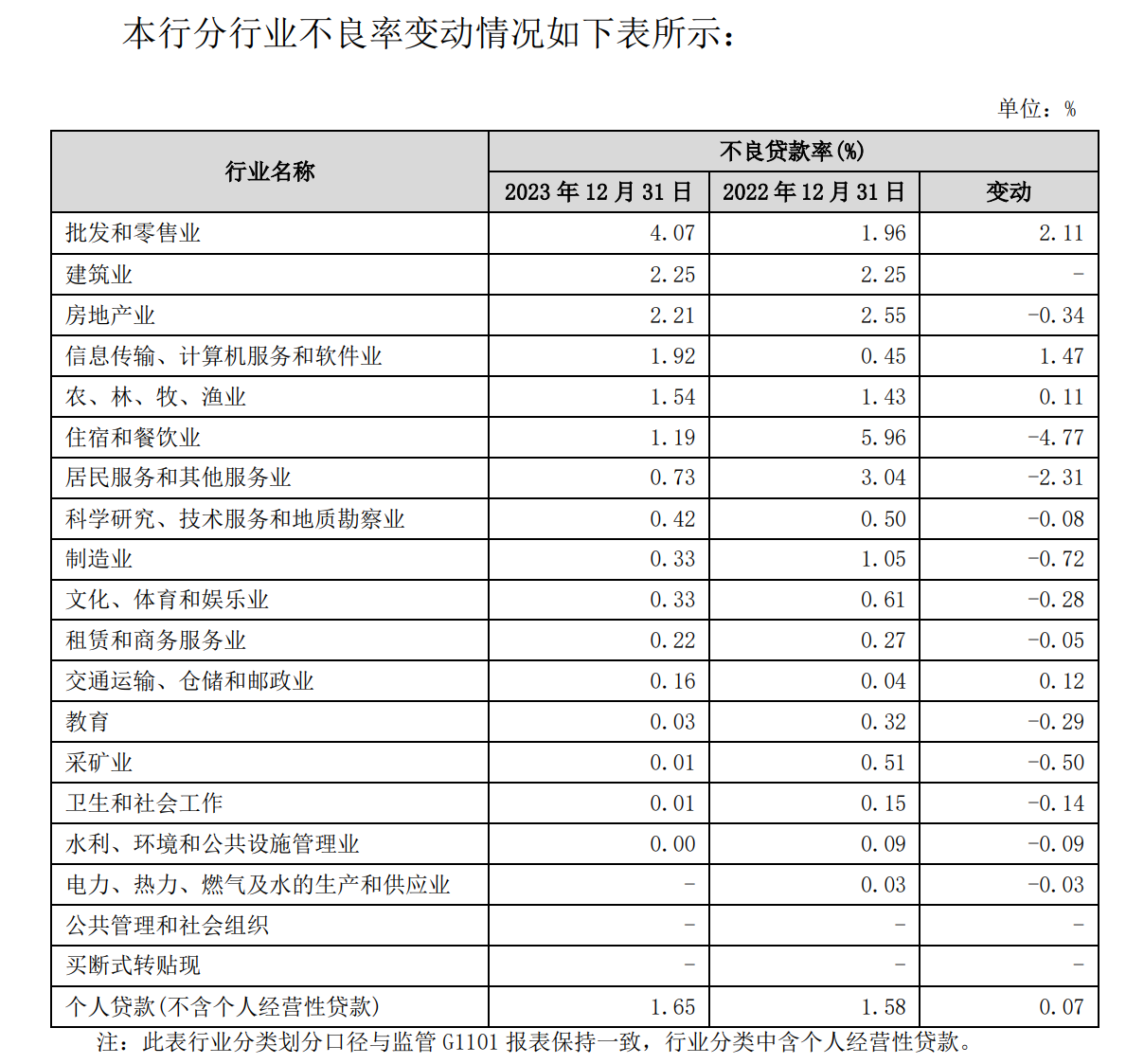 针对信贷资产方面,贵阳银行回复称,2023年末,不良率上升主要是部分行业不良贷款余额增加导致。2023年末,该行不良贷款余额51.65亿元,同比增加10.21亿元,其中,批发和零售业不良贷款余额18.70亿元,同比增加11.10亿元,主要是由于经济增速放缓,批发和零售业行业景气度仍在恢复过程中,部分企业生产经营和现金流状况受到影响。