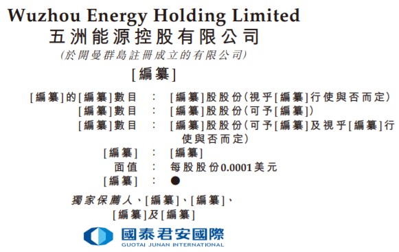 据港交所6月27日披露,五洲能源控股有限公司(五洲能源)向港交所主板提交上市申请,国泰君安国际为其独家保荐人。