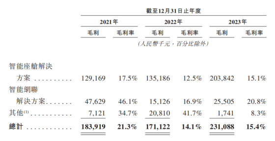 博泰车联网解释称,智能座舱解决方案在2022年的材料成本因芯片短缺期间车规级芯片的市场价格上涨而增加,导致销售成本的增长超过收入的增长;智能网联解决方案的毛利率在2022年出现大幅下滑是因为公司与一名客户的合作在2021年合约到期后终止。