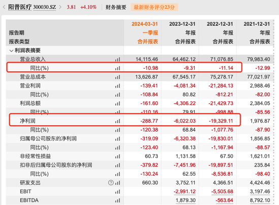 2021年—2023年,公司业绩连续三年收入下滑,2022年、2023年直接转入亏损。今年一季度,公司营业收入继续下滑,亏损近300万元。