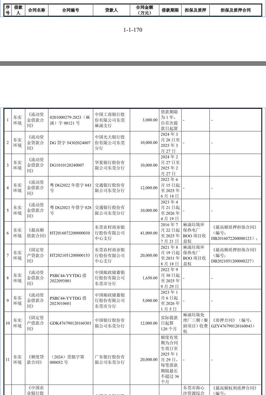 从说明书提供的清单看,东实环境目前正在履行的借款不止如此。
