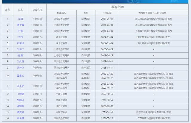 不仅未撤回的项目中存在疑似不符合IPO新规的情形,华泰联合撤回的许多项目中被发现“带病闯关”。最近三年,华泰联合因保荐业务收到6张罚单,还有16名保代收罚单,合计22次。