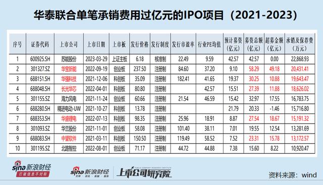 Wind显示,2021-2023年,华泰联合合计保荐68家IPO项目成功上市,合计获得48.58亿元承销保荐佣金,平均每单IPO项目获得7144万元佣金。