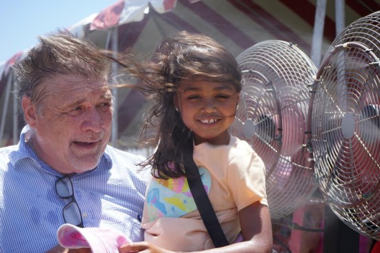 6月22日,人们在美国洛杉矶举行的一场活动上吹电扇降温。新华社发