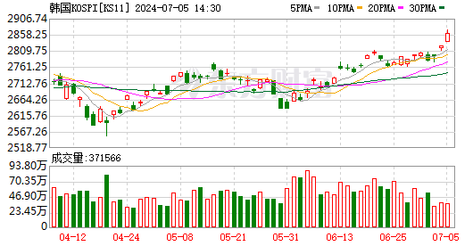 周五,韩国股市延续强势。当天,韩国综合指数收涨1.32%,报2862.23点,这也是该指数连续第三个交易日上涨。三星电子对该指数贡献最大,该股票周五上涨2.96%,报87100韩元/股。