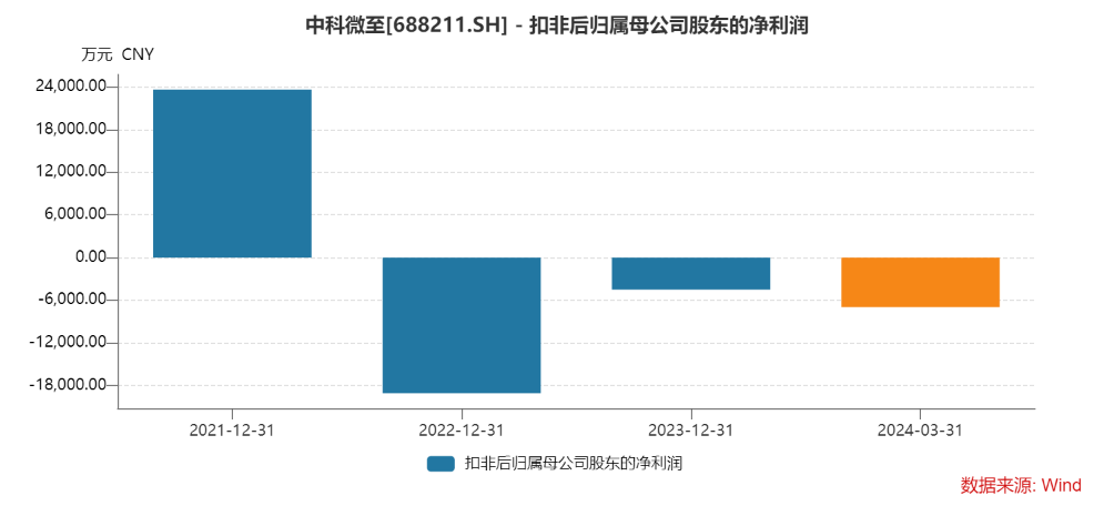 由此可见,中科微至的扣非归母净利润已经连续亏损两年了。
