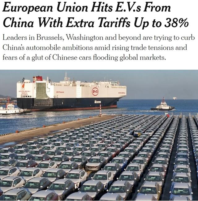 欧盟委员会前不久发表声明,拟从7月4日起对从中国进口的电动汽车征收临时反补贴税。