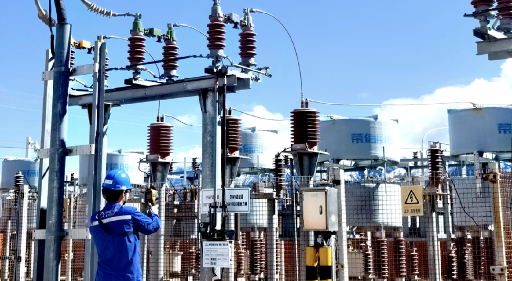 结合6月安全生产月,以安全生产为前提,中国节能严格落实各项重点保电措施,集中启动“巡视+运维”24小时双人双岗值班模式,对风电场电力设备、风电机组和集电线路开展迎峰度夏特殊巡视检查。图为中国节能所属风电新疆区域公司托里风场生产人员对升压站设备进行测温,确认设备安全运行。