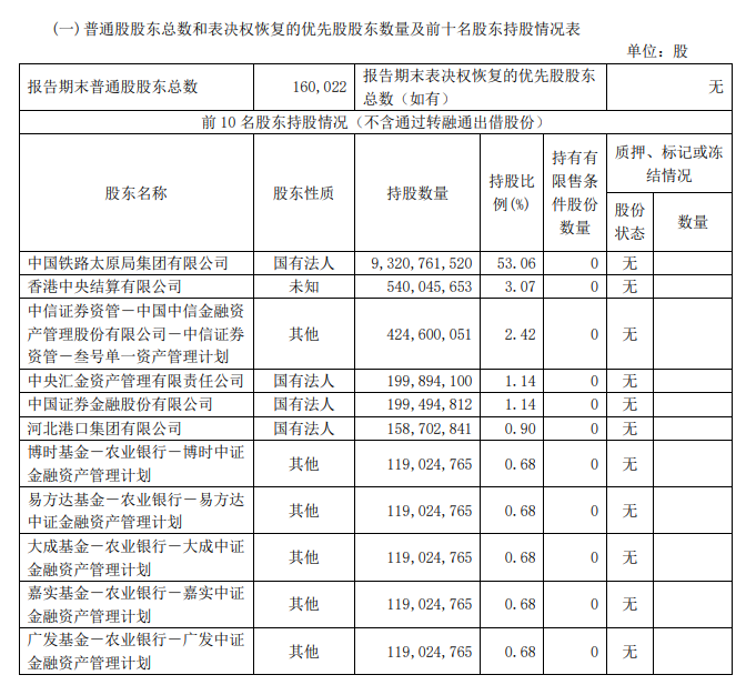 截至目前,中信金融资产合计持有大秦铁路普通股9.07亿股,占大秦铁路已发行股份总数的5%。