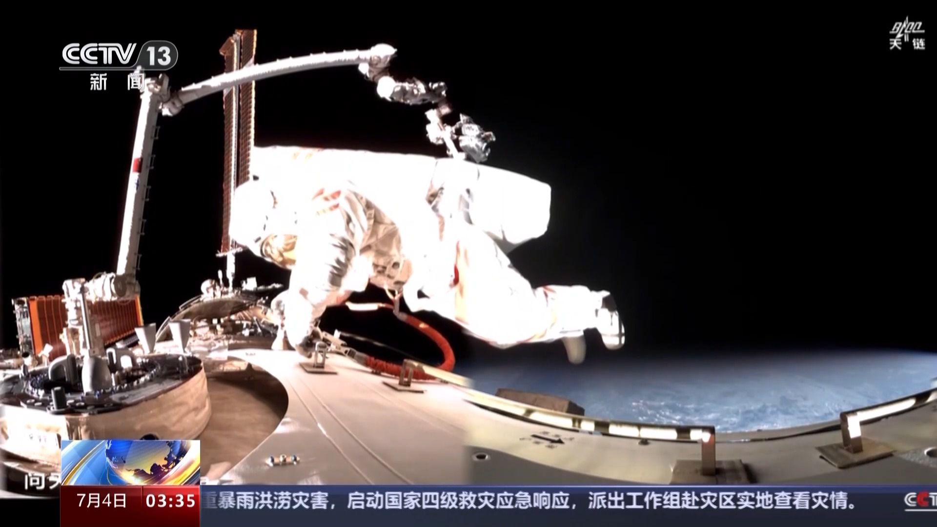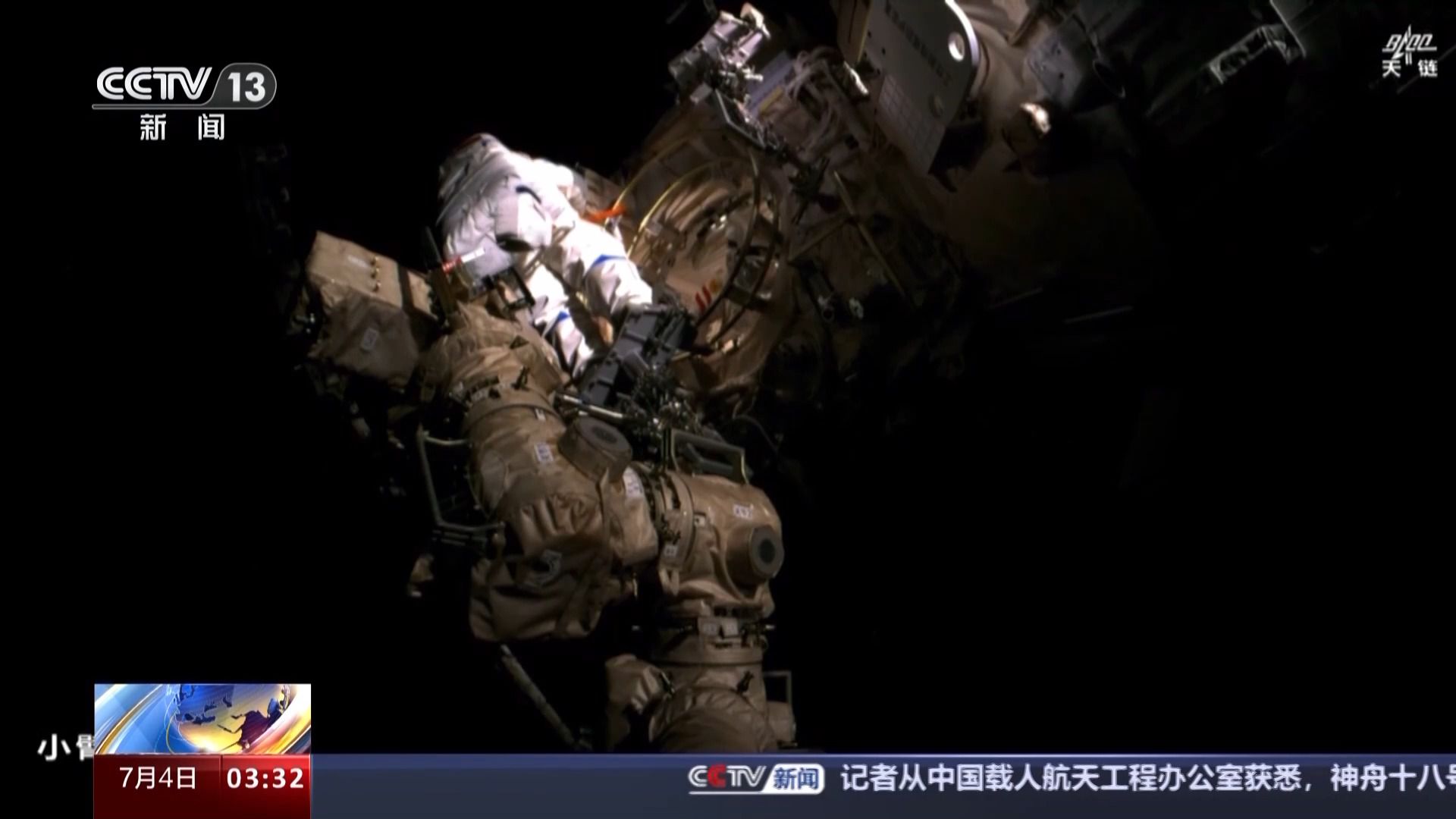 其间,航天员李广苏在天和核心舱内进行机械臂监控和必要的辅助操作。此次出舱活动继续针对可能存在的空间碎片撞击风险,展开相关防护作业。