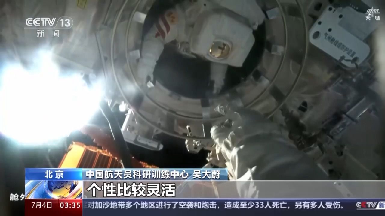 中国航天员科研训练中心 吴大蔚:航天员完成这次出舱任务非常轻松,而且完成得也非常顺利、非常完美。这个乘组思维比较缜密,个性比较灵活,所以他们是严肃认真当中又活泼有趣,是非常有青年活力和朝气的一个乘组。